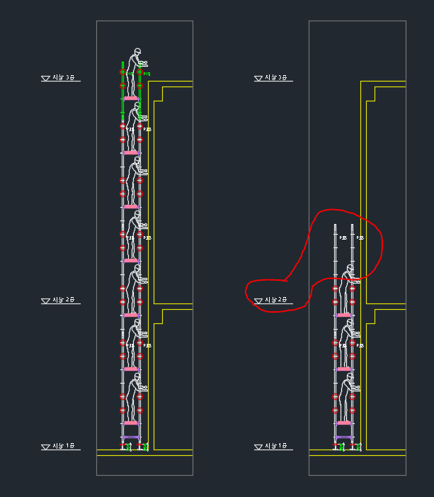 시스템 비계를 실제 설치시 타설계획에 맞춰서 설치를 하게 된다.