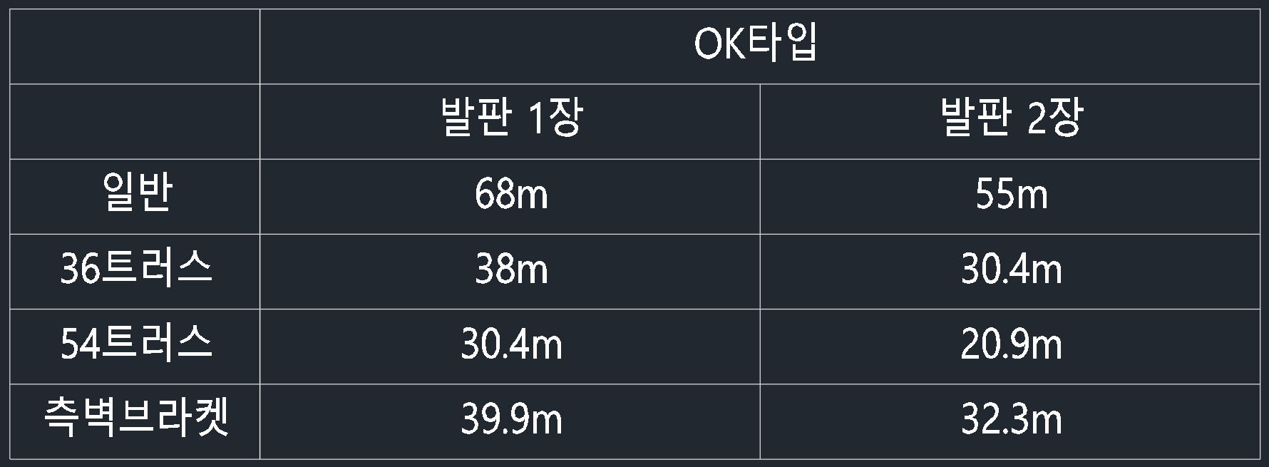 이 도표는 주로 도면 협의를 위해 많이 쓰이기 때문에 참고용입니다. 실 설계시 반드시 구조계산을 하고 설계를 해야합니다.
